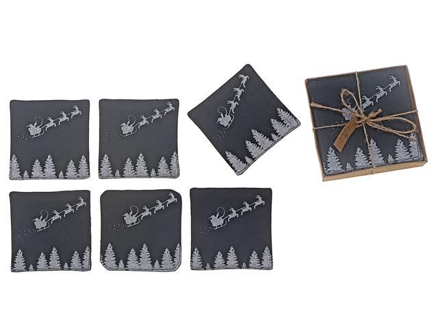 6 PC SQUARE PRINTED COASTER (SANTA REINDEER)