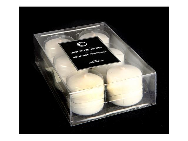 6 PK UNSCENTED VOTIVES (WHITE)