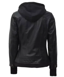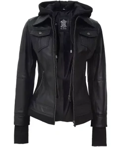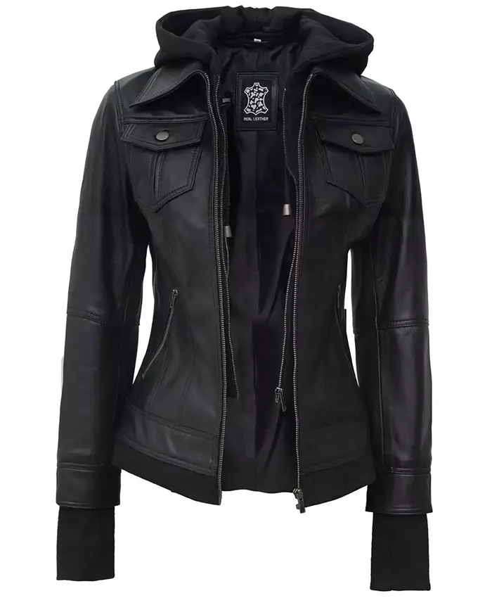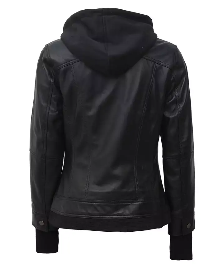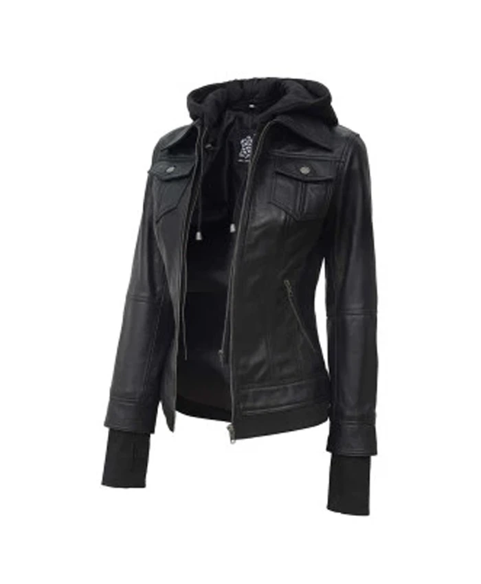 Womens Genuine Leather Slim Fit Hooded Jacket